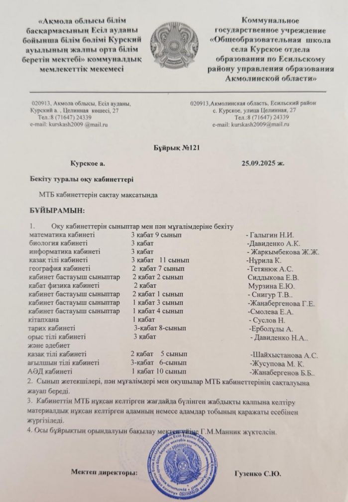Коммунальное государственное учреждение «Общеобразовательная школа села Курское отдела образования по Есильскому району управления образования Акмолинской области»